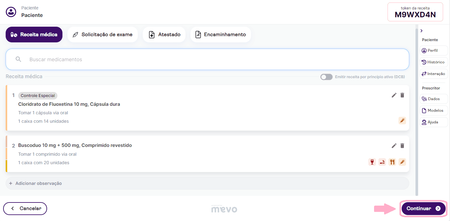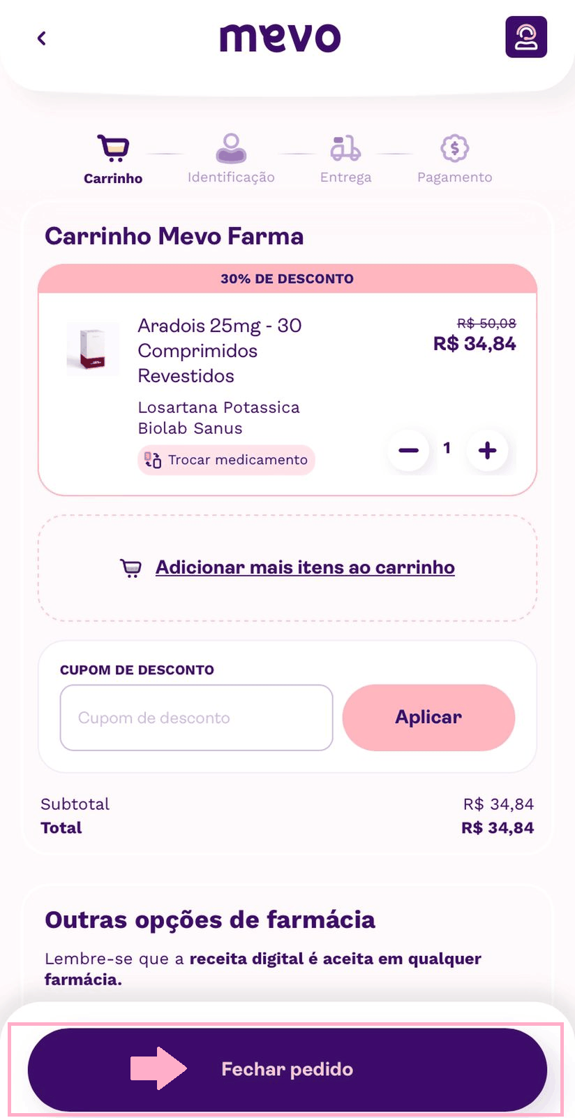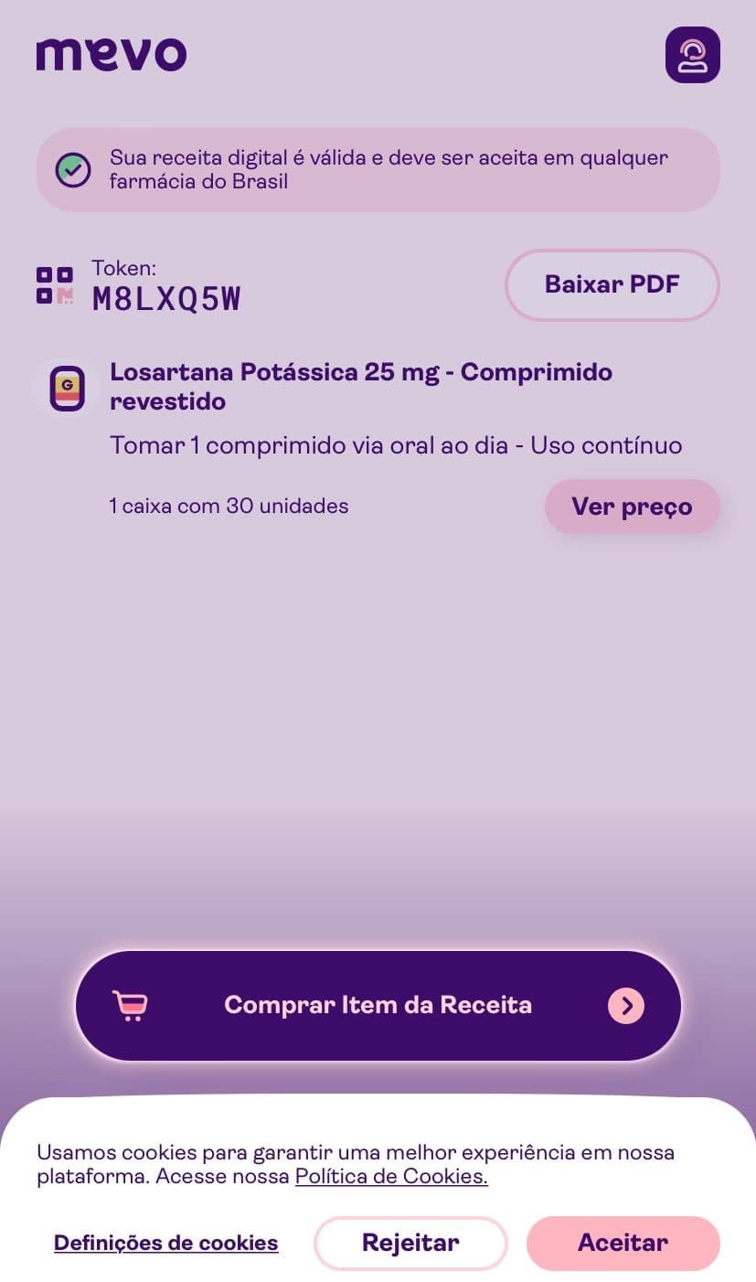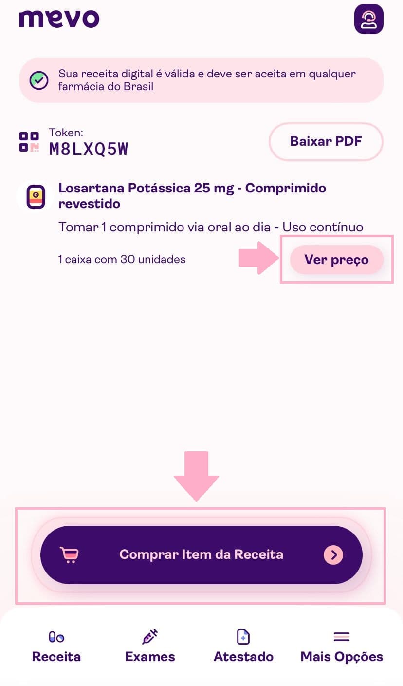 A compra do medicamento na Mevo Farma é realizada diretamente pela receita digital que você recebeu.