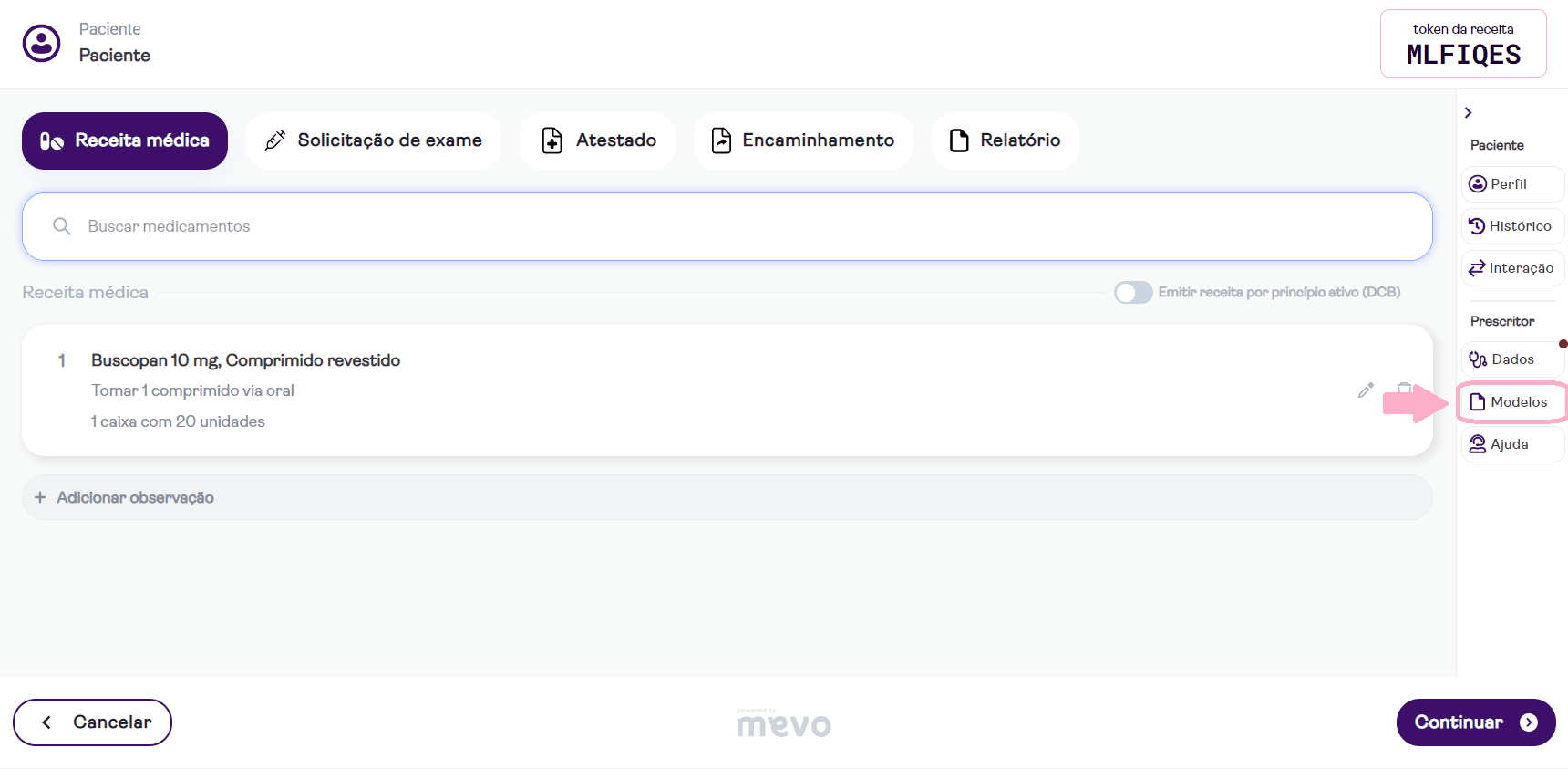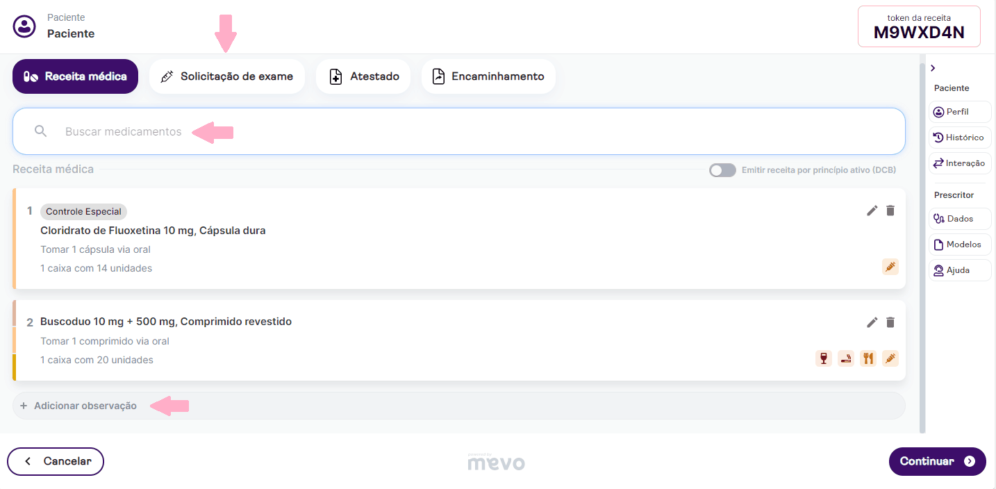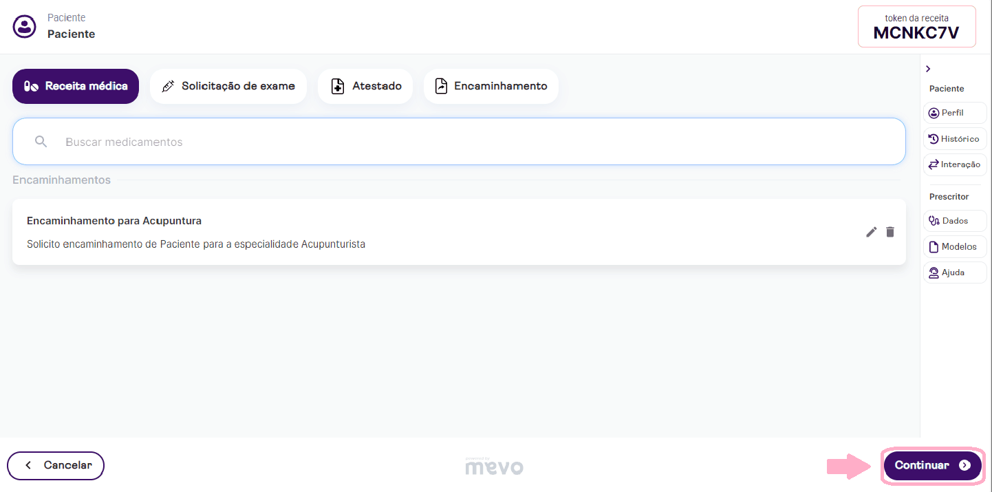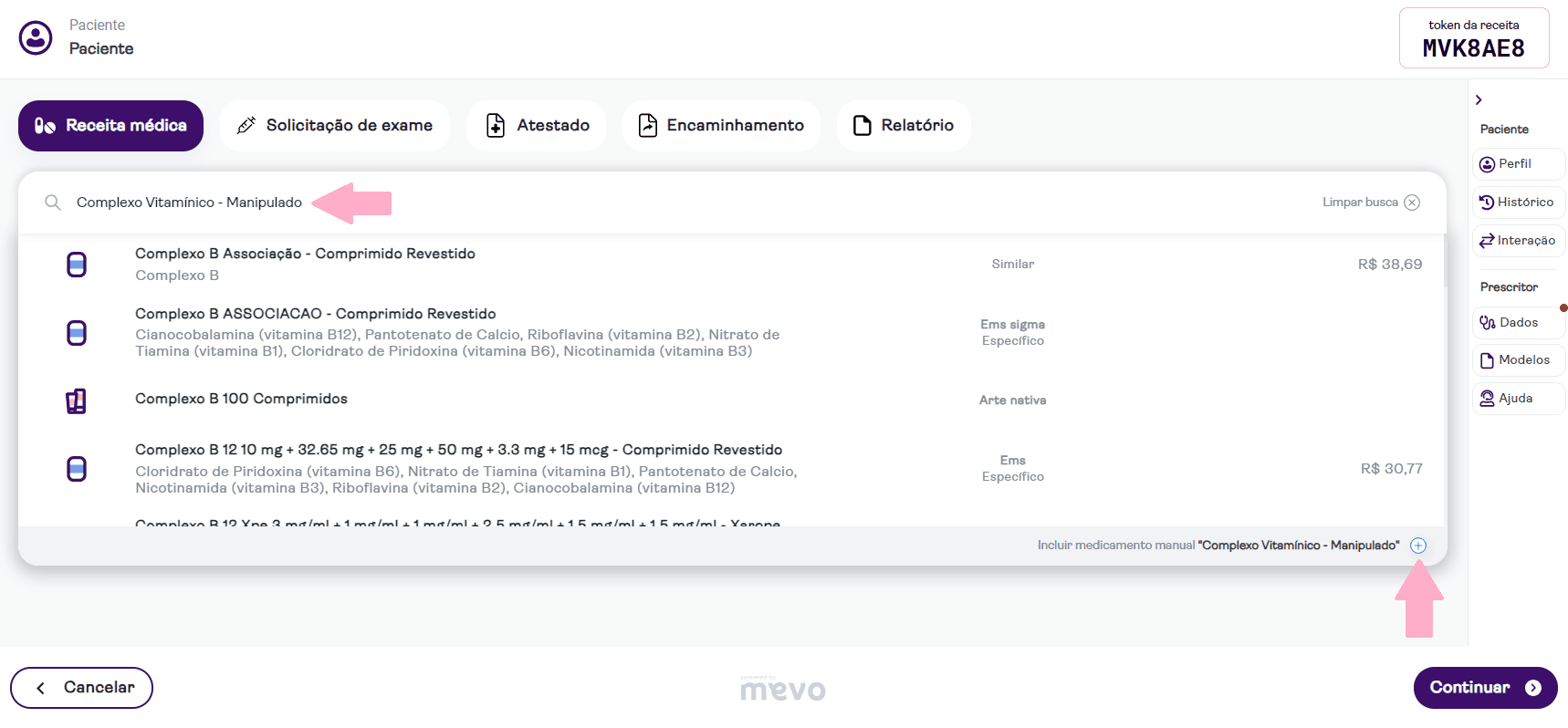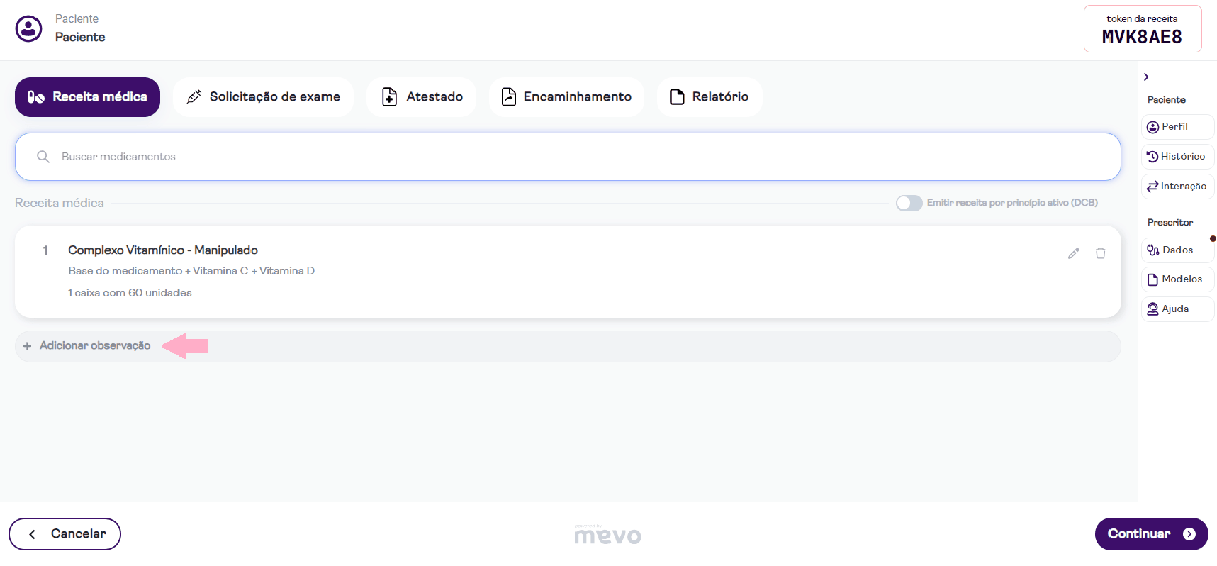 A compra do medicamento na Mevo Farma é realizada diretamente pela receita digital que você recebeu.