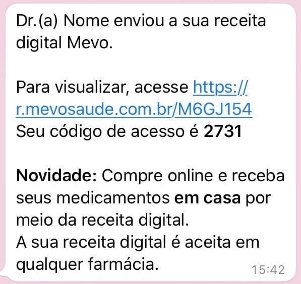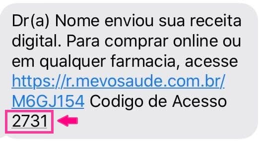1º Acesse sua receita online recebida via SMS, e-mail ou WhatsApp