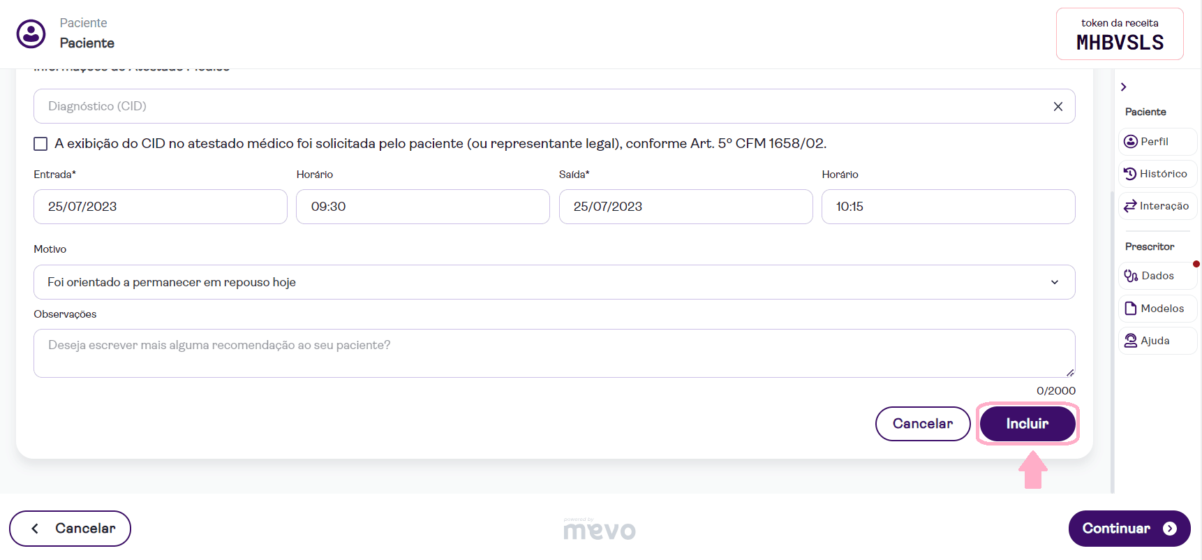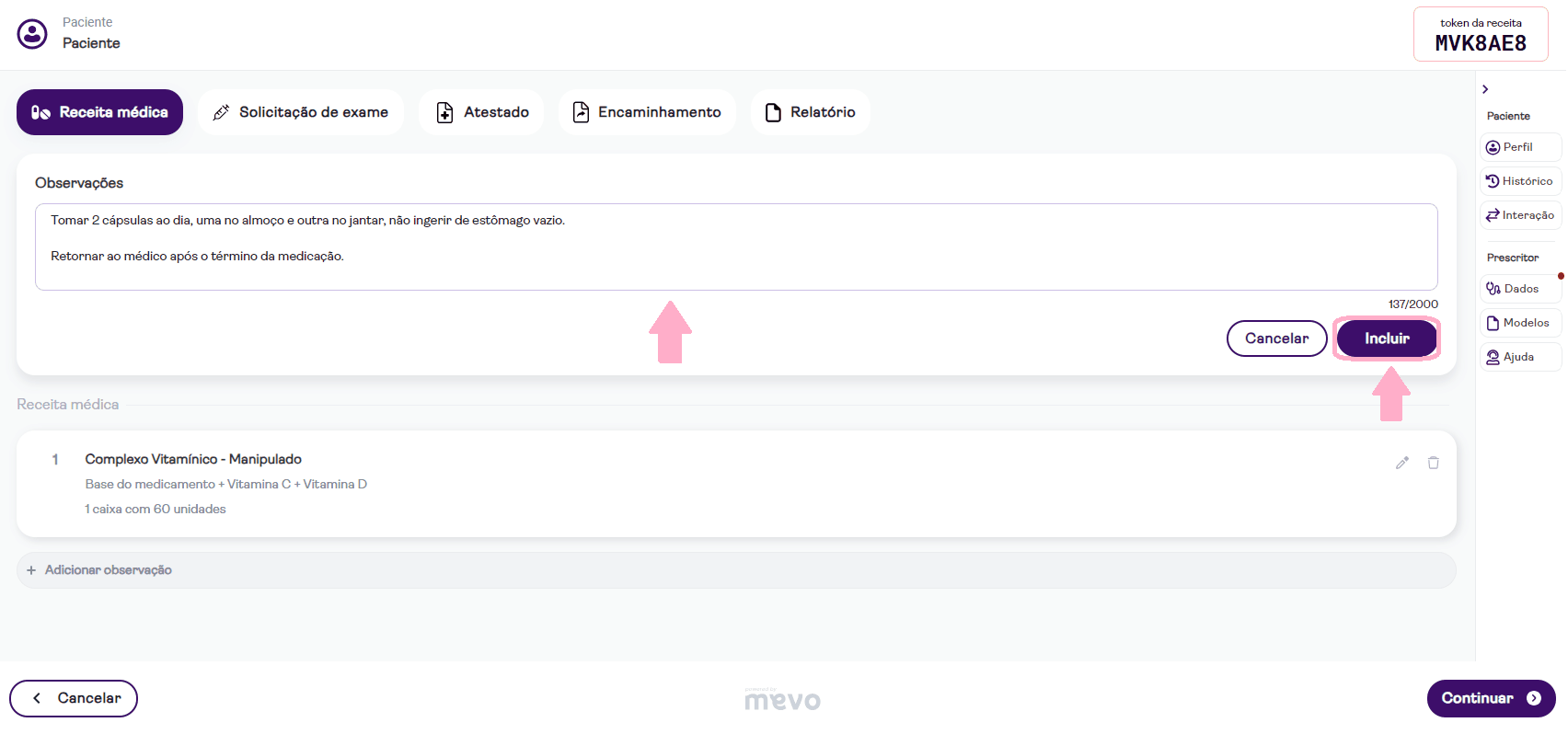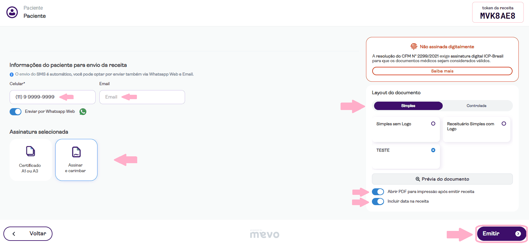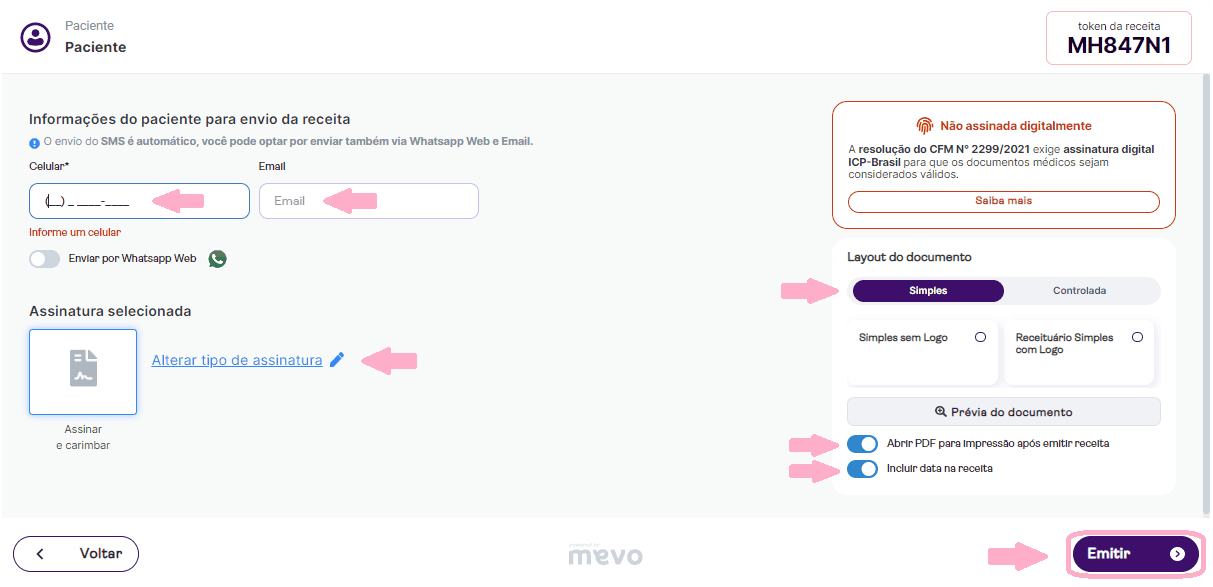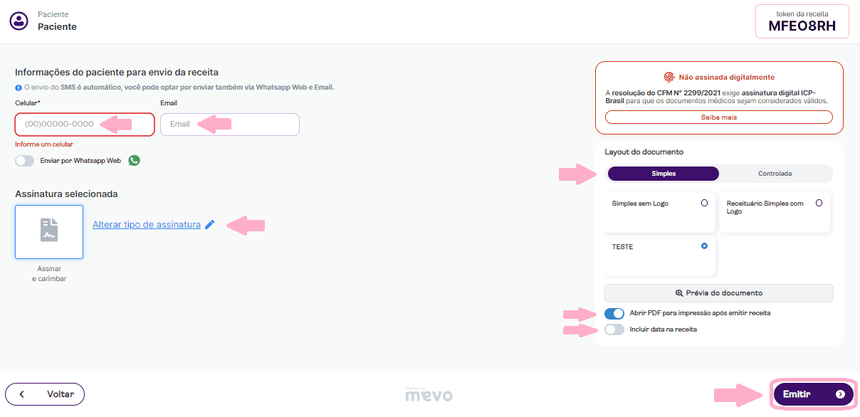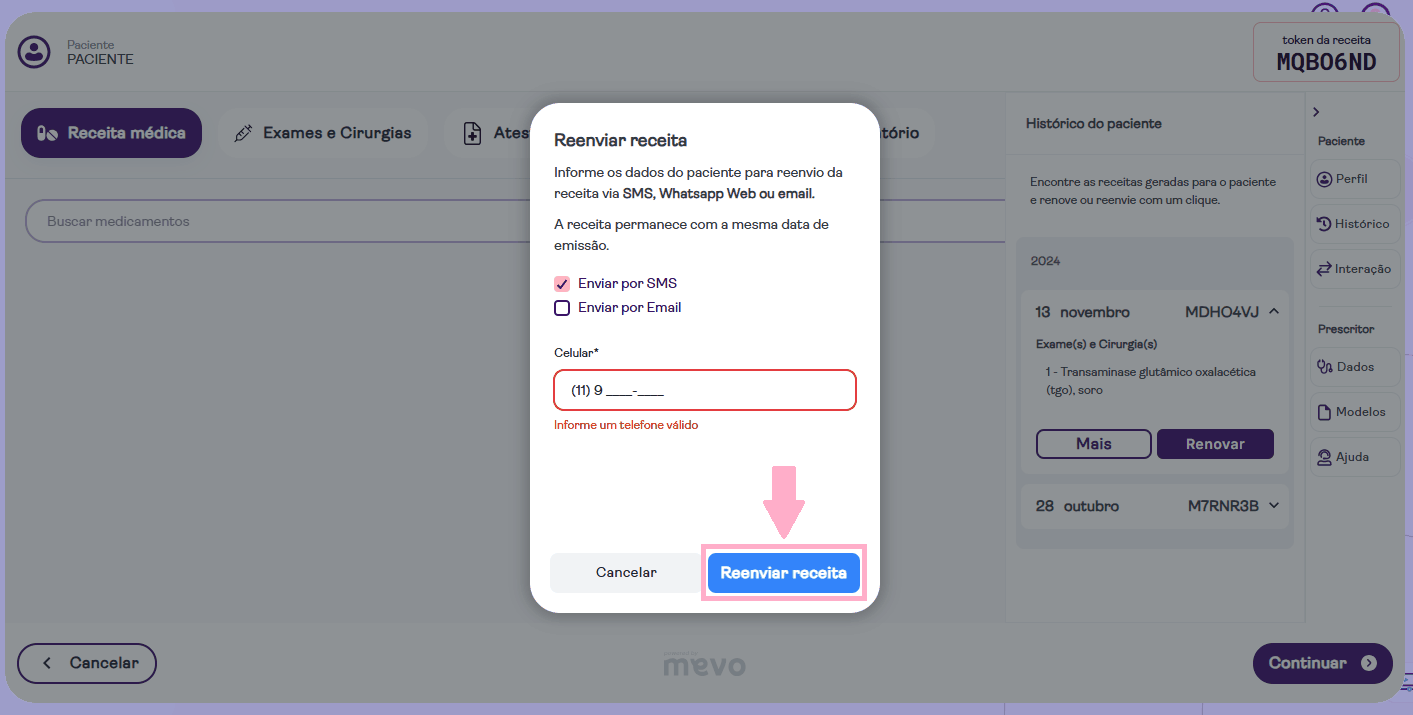 No momento que você for emitir a receita, não esqueça de conferir se o celular do paciente e e-mail estão certinhos, ok? Para não correr o risco do paciente não receber por conta de um dado errado.
