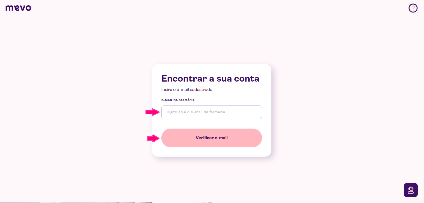 3º Insira o e-mail cadastrado da sua farmácia e clique em 'Verificar e-mail'