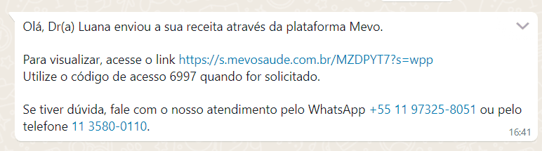 Seu paciente pode receber a receita por SMS, WhatsApp e/ou e-mail.