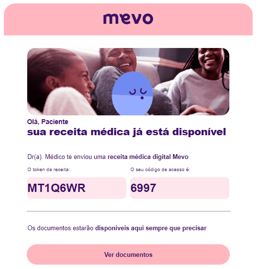 Ah, e na hora de orientar seu paciente, informe que não é preciso imprimir a receita para comprar o medicamento. O papel acabou! Basta seu paciente apresentar na farmácia o Token da receita e o código de acesso, que vieram juntos com link, que vai dar tudo certo!